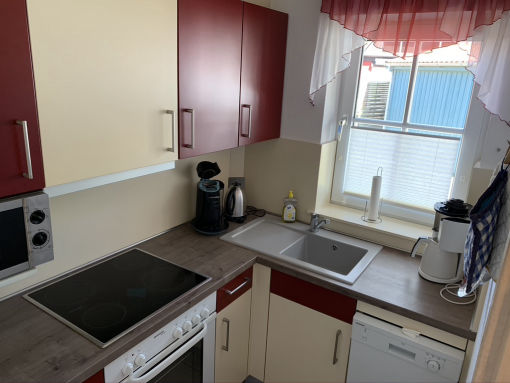 Die modernisierte Küche bietet alles, was man zur Selbstversorgung während des Urlaubes benötigt: Kühlschrank, Backofen, Herd, Kaffeemaschine (Senseo-Pad und Filter), Wasserkocher, Spülmaschine, uvm.