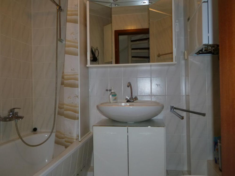 Im Haus befinden sich insgesamt zwei Badezimmer, eines im Erdgeschoss und eines im 1. Obergeschoss. Das Badezimmer im Erdgeschoss ist mit Dusche, WC und Waschbecken ausgestattet. Im Badezimmer im 1. Obergeschoss befindet sich eine Duschbadewanne, WC und Waschbecken.