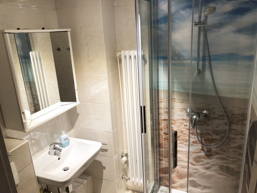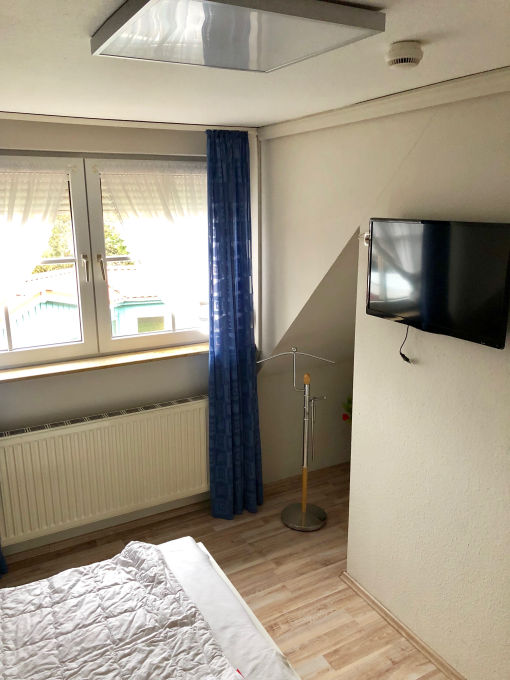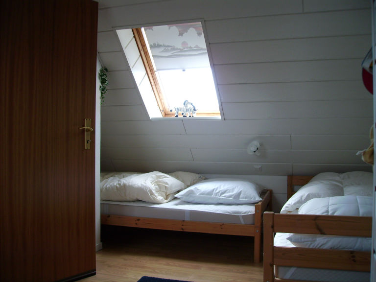 Insgesamt gibt es drei Schlafzimmer: Zwei befinden sich im 1. Obergeschoss und haben jeweils ein Doppelbett. Das dritte Schlafzimmer befindet sich im 2. Obergeschoss (Dachgeschoss) und hat zwei Einzelbetten.